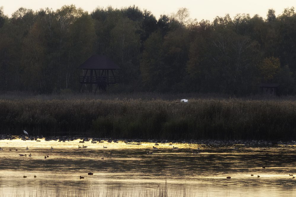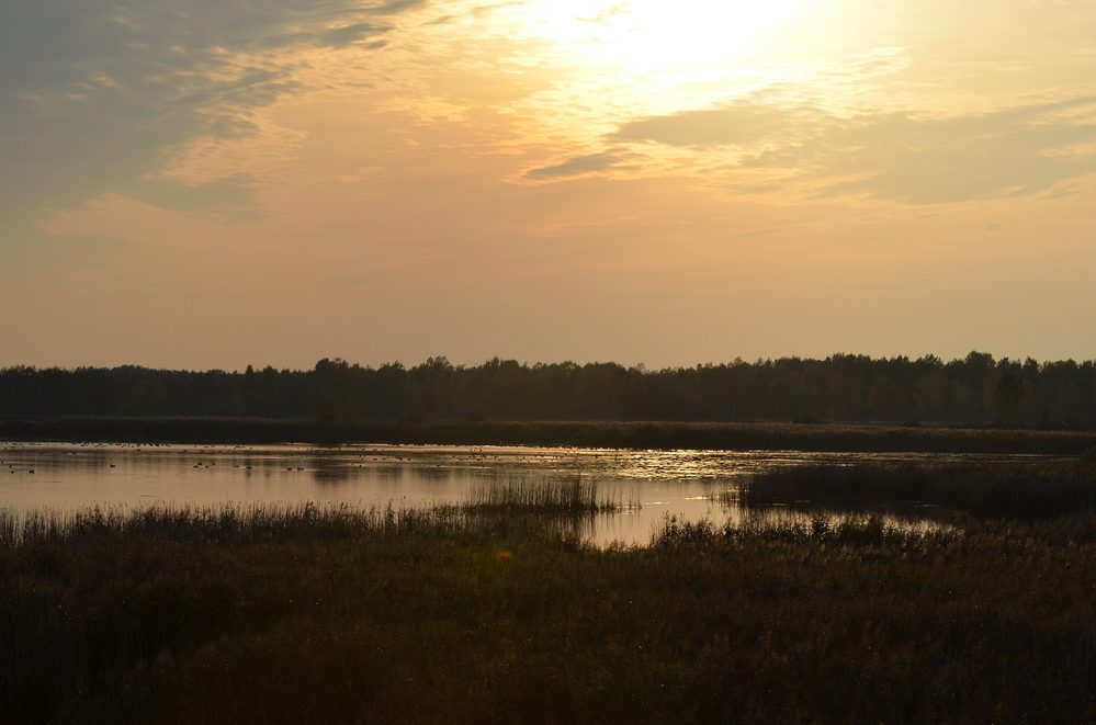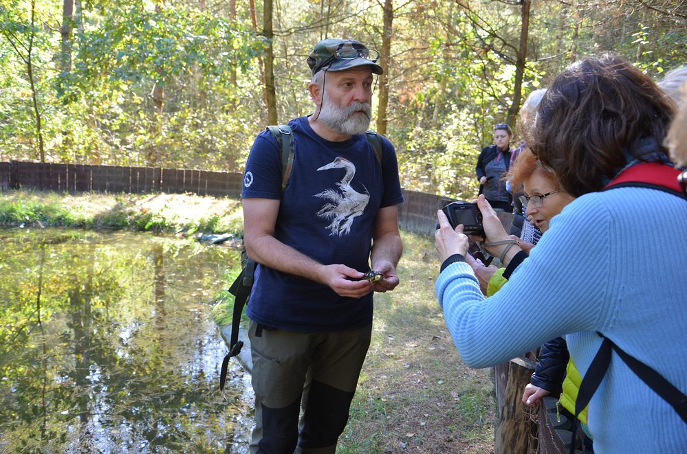 Drugiego dnia – bagien ciąg dalszy, a więc kolejne dwie bardzo atrakcyjne ścieżki – ścieżka Czahary, od ludowej nazwy mokradeł porośnietcyh krzewami i Perehod, czyli przejście – swoiste przejście pomiędzy kompleksem Stawów Pieszowolskich, gospodarowanych przez Park. Obie ścieżki ściśle związane z ekosystemami wodno-błotnymi – rzadkimi w skali Polski, jeszcze w latach 70-tych meliorowanych i osuszanych na potrzeby rolnictwa. Takie siedliska upodobały sobie szczególnie ptaki: kszyk, kulik wielki, rycyk, kropiatka, śmieszka, błotniak stawowy, wodniczka, a także kormorany i żurawie. My dostrzegliśmy kilka czapli białych, żurawi, żółwie błotne, widzieliśmy także efekty działania bobra, który w Parku czuje się jak u siebie, zachowując lokalne podmokłości.