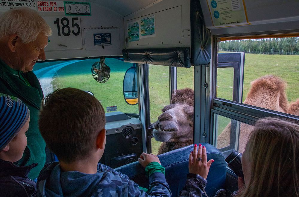 Wprawdzie są tam kolejki i inne atrakcje, my jednak zaserwowaliśmy najmłodszym uczestnikom Akademii Przyrodniczej, którzy wykazali się największym zaangażowaniem, wizytę części Kompleksu poświęconej prehistorycznym gadom, praoceanowi i safari. Jak widać na zdjęciach, nie tylko modele dinozaurów zrobiły niemałe wrażenie, ale także żywe zwierzęta na wybiegach, które miały ochotę podróżować razem z nami 🙂