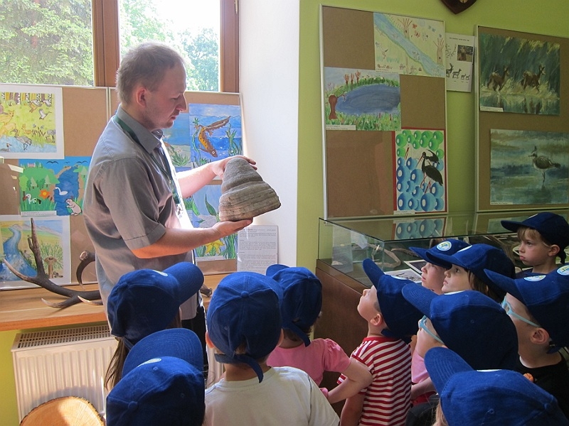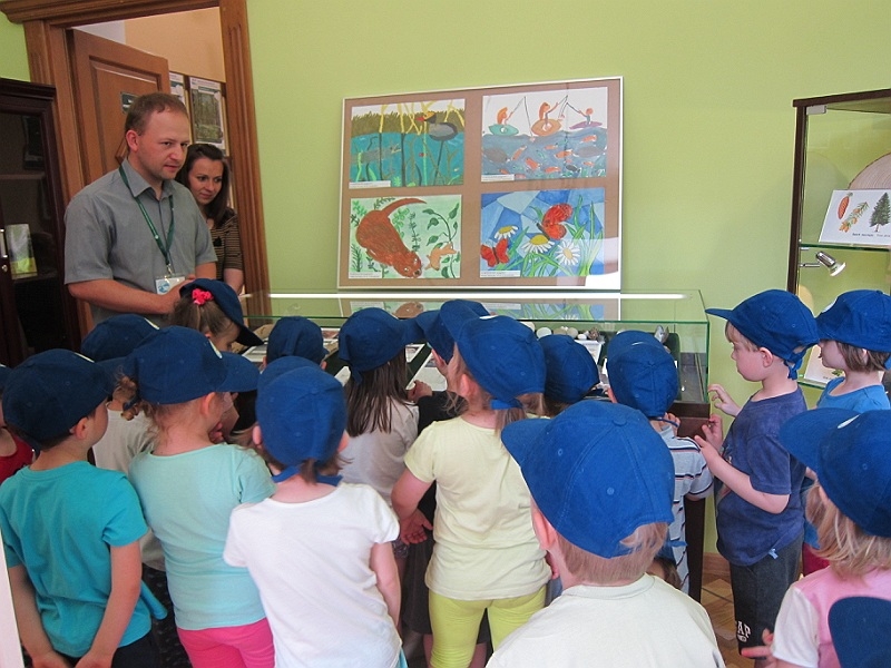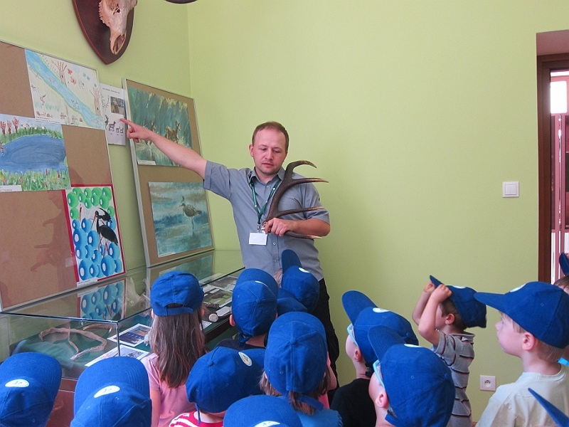 Mali goście zwiedzali pod przewodnictwem pracowników Centrum aktualną wystawę fotografii przyrodniczej oraz stałą ekspozycję eksponatów pochodzących z regionu. Dzieci zapoznały się z takimi tematami jak rykowisko, odżywianie ptaków, budka lęgowa.