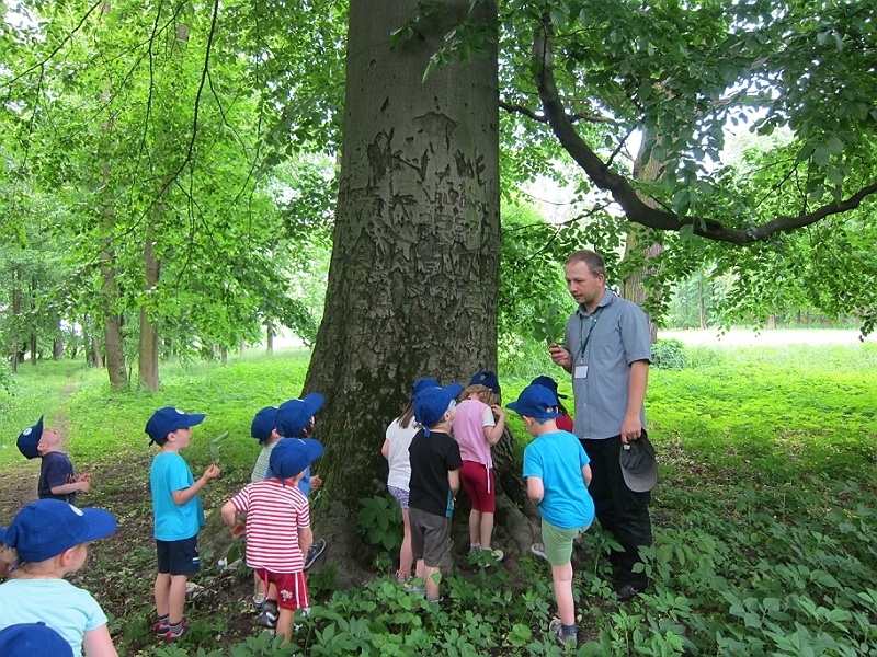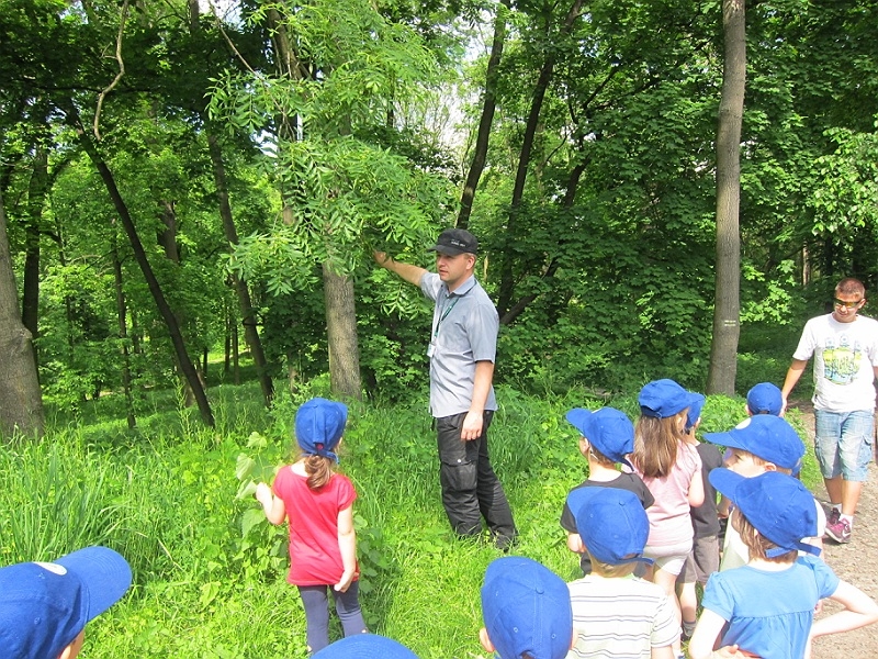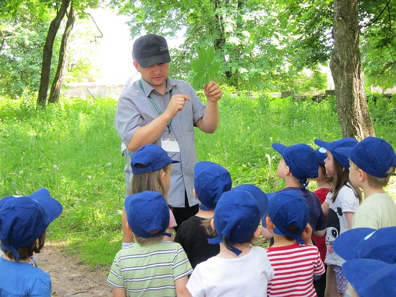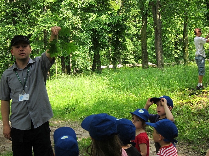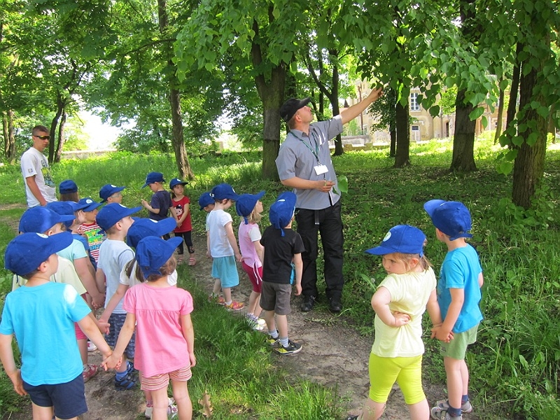 Zajęcia odbyły się także na terenie parku. Mali zwiedzający chętnie spacerowali na świeżym powietrzu zapoznając się z popularnymi gatunkami drzew. Dzieci wykazały dużą wiedzę przyrodniczą.